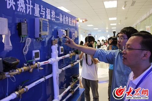 記者們現場體驗供熱計量與溫控一體化智能系統。(馬鑫 攝)