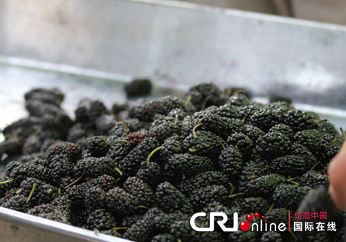 近日,國際在線生態中國頻道記者隨“椹果之鄉 生態夏津”生態報道行,來到了山東省夏津縣。白色的桑椹果比之紫色桑葚甜度不遑多讓。