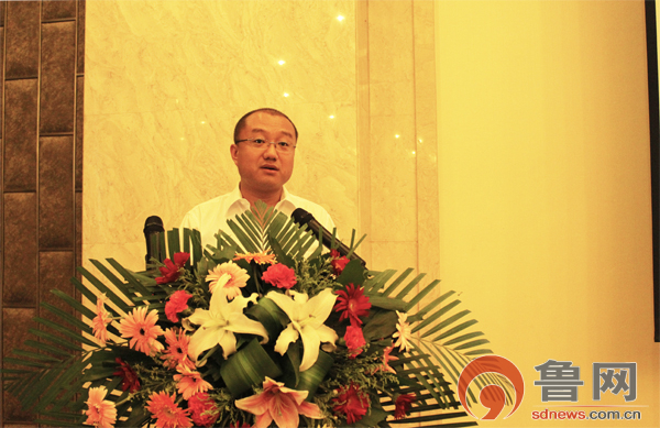 圖為魯網(wǎng)常務(wù)副總經(jīng)理魏子杰在特色山東館啟動現(xiàn)場致辭