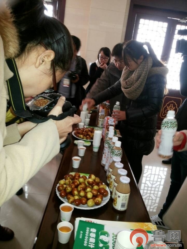 采訪團一行人現(xiàn)場品嘗沾化冬棗的香甜