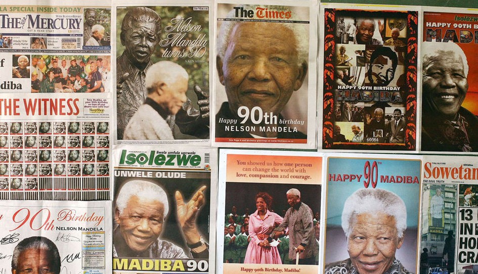 2008年7月,曼德拉迎來了自己的90歲壽辰。這樣拍攝于2008年7月18日的照片顯示,當天南非的主要報紙都在頭版位置報道了這一消息。即使已經隱退多年,曼德拉在南非國民中的影響力還是無可匹敵。