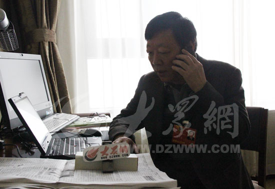 全國政協委員陳德展連線大眾網網友王和新,今年提案再次為農民代言。(大眾網特派記者王磊 攝)