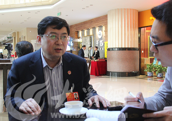 全國人大代表、泰安市政協副主席、泰安市中心醫院院長劉君接受大眾網記者采訪。(特派記者 赫洋 攝)