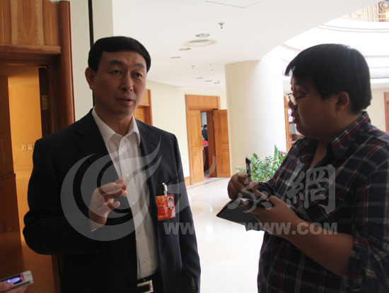 參加十二屆全國人大一次會議的十二屆全國人大代表、泰安市委副書記、市長王云鵬接受大眾網記者專訪。(大眾網特派記者 尹海洋 攝)