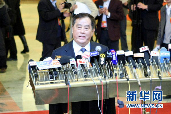 3月10日,列席十二屆人大一次會議的鐵道部長盛光祖在人民大會堂北門入口接受媒體記者采訪。新華網記者 楊理光攝