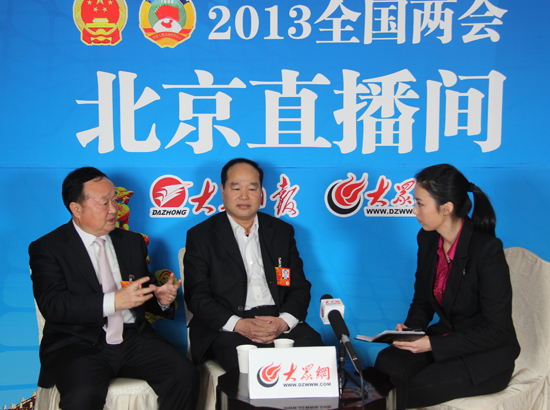 全國人大代表姜衛(wèi)東、方才臣做客大眾網(wǎng)2013年全國兩會北京直播間。(特派記者 盛堃 攝)