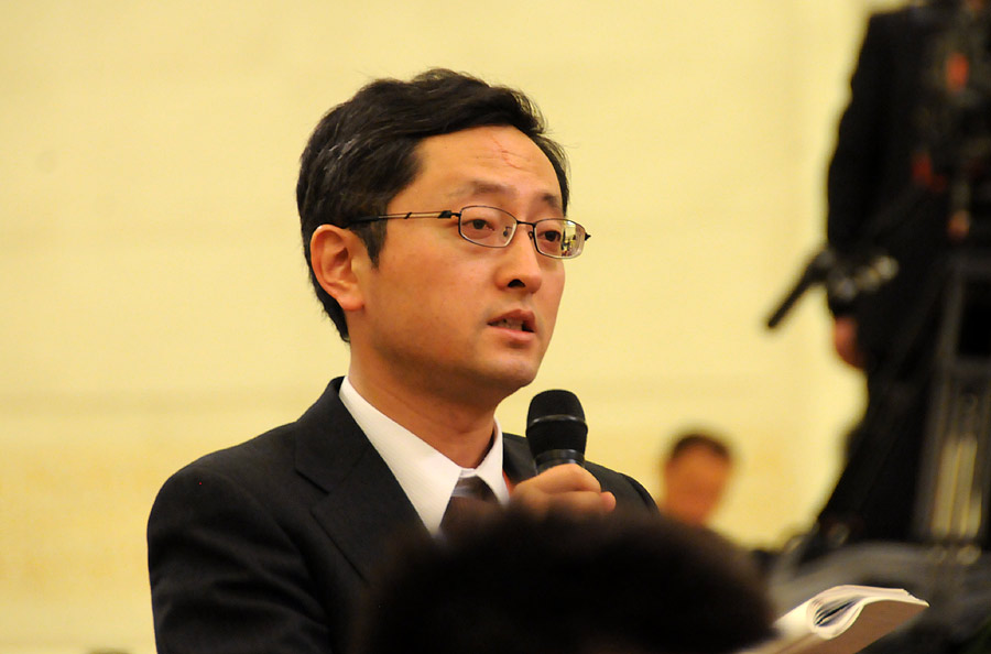 3月9日,十二屆全國人大一次會議舉行記者會,外交部部長楊潔篪就“中國的外交政策和對外關系”答中外記者問。圖為日本朝日新聞記者提問。新華網/中國政府網 翟子赫 攝