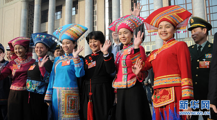 3月5日,第十二屆全國人民代表大會第一次會議在北京人民大會堂開幕。這是少數民族代表身著盛裝出席開幕會。新華網 翟子赫 攝