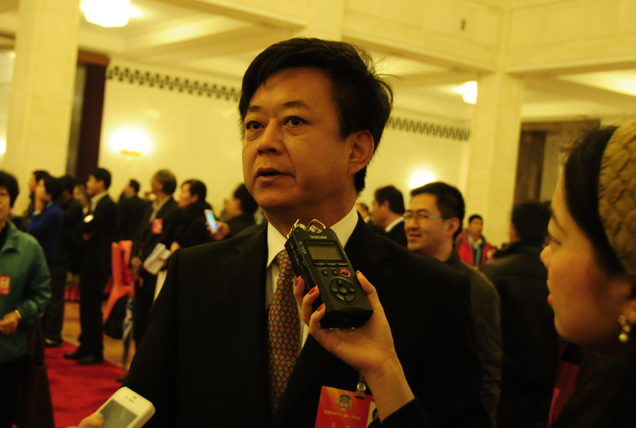 3月12日(星期二)上午9時, 全國政協(xié)十二屆一次會議在人民大會堂舉行閉幕會,通過政協(xié)第十二屆全國委員會第一次會議關于常務委員會工作報告的決議,通過政協(xié)第十二屆全國委員會第一次會議提案審查委員會關于政協(xié)十二屆一次會議提案審查情況的報告,通過政協(xié)第十二屆全國委員會第一次會議政治決議。圖為全國政協(xié)委員朱軍在會前接受媒體記者采訪。新華網/中國政府網 宋君毅 攝