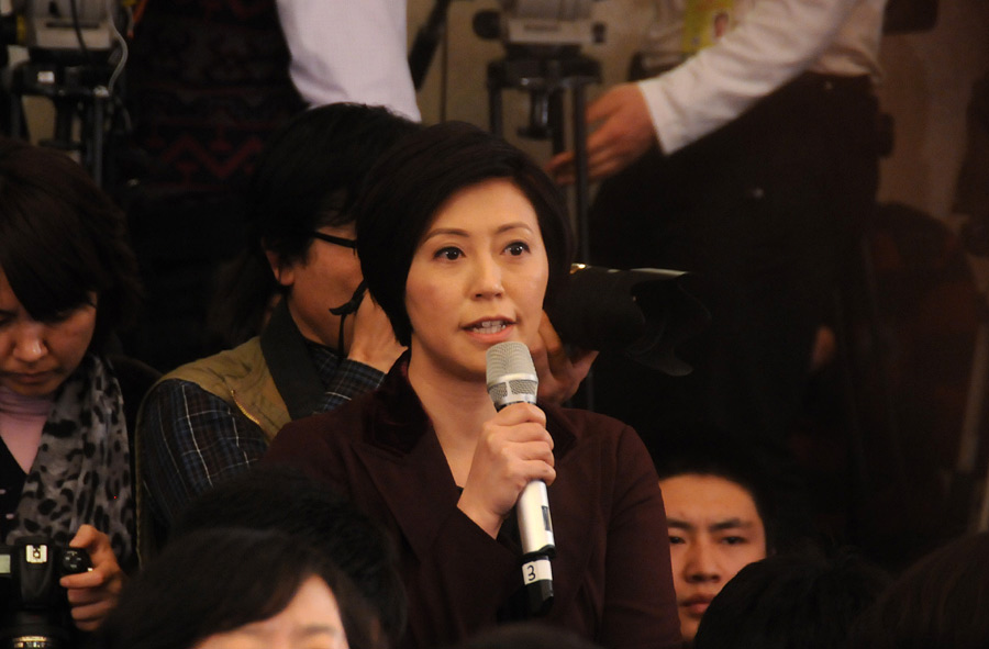 3月4日,十二屆全國人大一次會議在人民大會堂一層新聞發布廳舉行新聞發布會,由大會發言人就會議議程和人大工作相關的問題回答中外記者的提問。圖為香港亞洲電視臺記者提問。新華網/中國政府網 翟子赫 攝