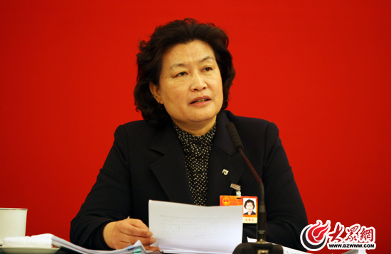 全國人大代表、德州市委書記、市人大常委會主任吳翠云在十一屆全國人大四次會議山東團分組審議中。(特派記者 曹亮 攝)