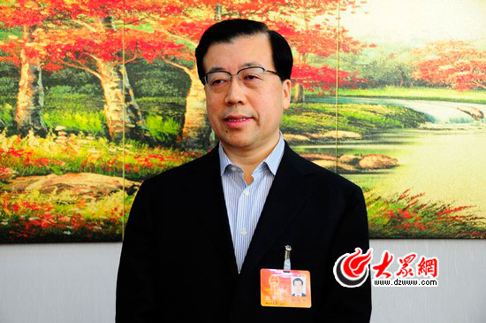 省人大代表、煙臺(tái)市委書(shū)記、市人大常委會(huì)主任張江汀在接受大眾網(wǎng)記者采訪。