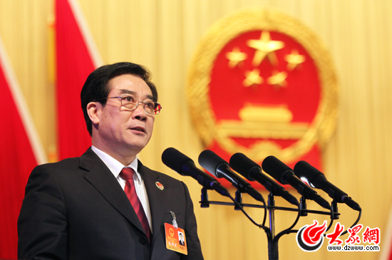 27日下午,在省十二屆人大一次會議第二次全體會議上,山東省人民檢察院檢察長吳鵬飛作工作報告。(盛堃 攝)