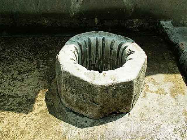 次日一早,范式領(lǐng)著大家挖得那口井,井水已經(jīng)溢滿了井沿,井水如鏡子般明亮清澈見底,大家站在井邊往下看時,發(fā)現(xiàn)井底的那塊巨石,被立了起來,筆直地貼在井壁上,那巨石上留下了九道深深的爪痕。從此,范莊的百姓們不再愁水吃了。因這口大井水質(zhì)清醇甘冽,井水也從未斷過,人們傳說是范式引來了水龍王,龍王爺根據(jù)上天的旨意,夜里伸出龍爪掀起了井中的那塊巨石,一把抓出“九道深溝”。井底的泉眼直通東海。后來,范式挖井引水,拯救范莊缺水百姓的事,就成為一個美好的傳說,一代一代地傳下來。如今,“九道溝”巨石還在,古井亦存。
