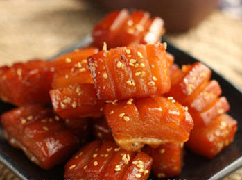 現(xiàn)如今金鄉(xiāng)“紅三刀”是以大槽芝麻油、麥芽、小米糖稀、白糖、蜂蜜、芝麻、桂花為原料。新炸出來的紅三刀呈漫方形,迎面三刀,表分四瓣,面蒙脫皮芝麻,燦若繁星點綴;中間紅而透亮,底似薄冰,閃閃發(fā)光。食之外酥內(nèi)松,香味純正,沙甜可口,食而不膩,脆而不焦,廣受歡迎。