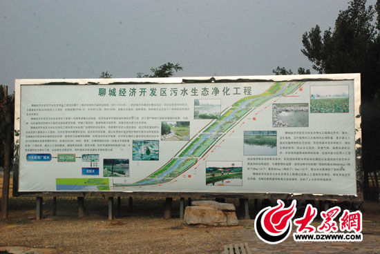 在聊城經濟開發區污水生態凈化工程展板上,列出了開發區污水凈化工程的詳細情況。 記者 郭豪 攝