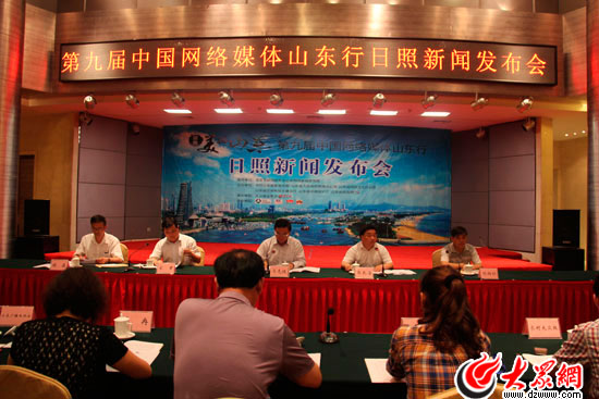 “聚焦美麗山東-第九屆中國(guó)網(wǎng)絡(luò)媒體山東行”日照新聞發(fā)布會(huì)現(xiàn)場(chǎng)。大眾網(wǎng)記者 侯健 攝