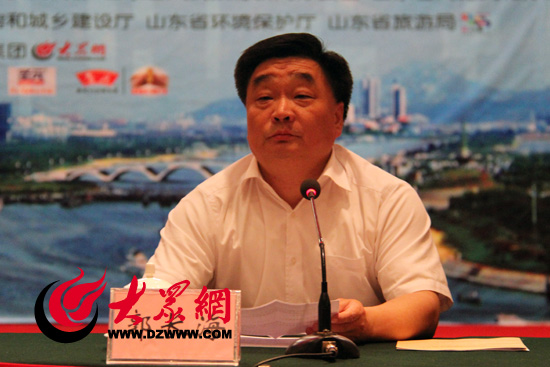 日照市委宣傳部常務(wù)副部長(zhǎng)郭長(zhǎng)海主持發(fā)布會(huì)。大眾網(wǎng)記者 侯健 攝