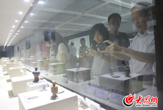 今天上午,“聚焦美麗山東--中國網(wǎng)絡(luò)媒體山東行”西線采訪團(tuán)來到了菏澤市博物館,這里有元代沉船、青花瓷器、明代犀牛角杯等8000余件文物。(記者 郭豪攝)