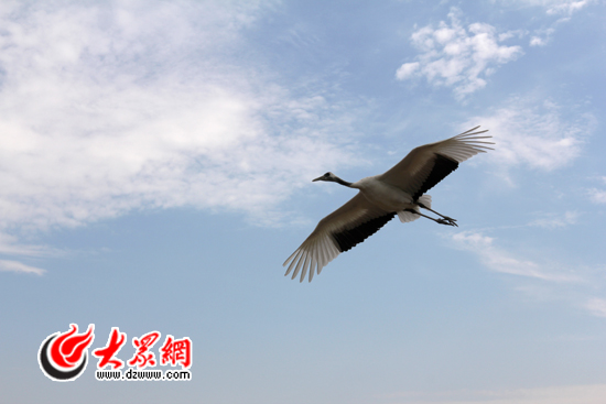 保護區(qū)內(nèi)的丹頂鶴從記者們頭頂掠過。