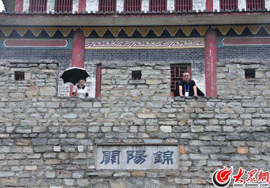 南線采訪團記者冒雨爬上齊長城錦陽關段關樓,遠眺中國最古老長城。(大眾網記者 熊戈措 攝)