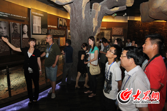 記者們參觀館內(nèi)的英雄春秋展區(qū)。
