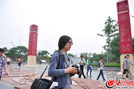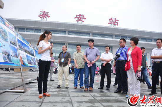 22日上午,“聚焦美麗山東——第九屆中國網絡媒體山東行”南線采訪團記者采訪泰安高鐵站。大眾網記者 熊戈措 攝
