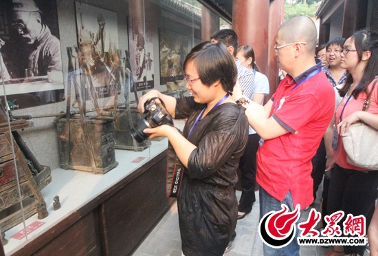采訪團記者來到棗莊市薛城區的鐵道游擊隊影視城,記者們進入魯南民俗博物館了解魯南民俗情況。 記者 郭豪 攝