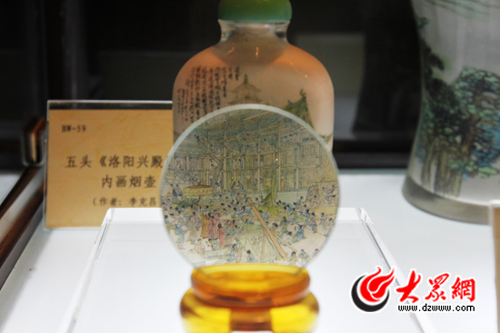 《洛陽興殿圖》內(nèi)畫瓶中描繪了三百多人的宏大場,是工藝美術(shù)大師李克昌用三年的時間制作完成。大眾網(wǎng)記者 馬鑫 攝