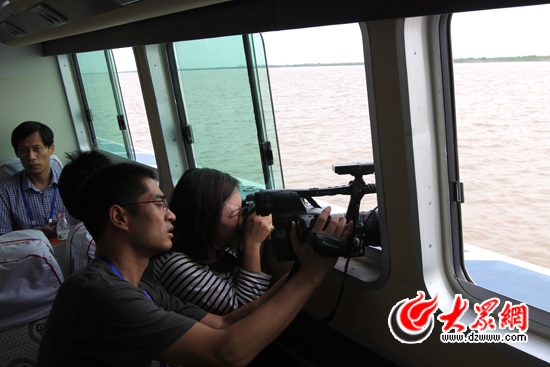 采訪團(tuán)記者們?cè)诖辖嚯x拍攝黃河。大眾網(wǎng)記者 馬鑫 攝