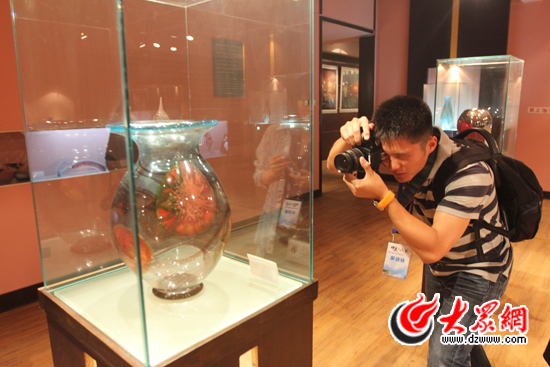 “喜歡它的鮮艷,喜歡它的純凈。”已進(jìn)入博物館記者們就忙著搶拍各色琉璃藝術(shù)品。大眾網(wǎng)記者 馬鑫 攝