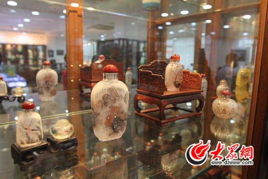 琉璃博物館內(nèi)展出的現(xiàn)代內(nèi)畫鼻煙壺。大眾網(wǎng)記者 馬鑫 攝