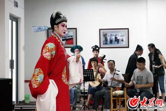 在采訪中,最能引起采訪團記者們興趣的莫過于傳統(tǒng)曲藝高密茂腔的表演。高密茂腔曲調(diào)質(zhì)樸自然、委婉柔怨,生活氣息濃郁,被譽為“膠東之花”。茂腔的唱詞語音多用本地方言,2006年4月被公布為首批國家級非物質(zhì)文化遺產(chǎn)保護項目。今天,采訪團記者們觀賞了“王漢喜借年”選段等表演,扮演劇中王漢喜的演員柳欣今年27歲,已經(jīng)是十年的“老戲骨”。他告訴記者,他們每個月會在高密文化館內(nèi)向游客及市民表演2至3次,免費向所有觀眾開放。