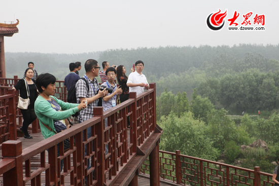 媒體行記者登高俯瞰白浪綠洲濕地公園 大眾網記者 楊春衛(wèi) 攝