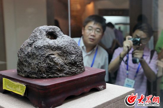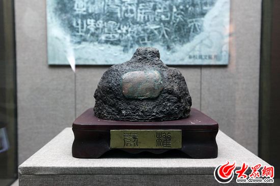 “聚焦美麗山東——第九屆中國(guó)網(wǎng)絡(luò)媒體山東行”東線采訪團(tuán)來(lái)到文登市博展中心參觀先秦文化統(tǒng)一度量衡用的秦權(quán) 大眾網(wǎng)記者 楊春衛(wèi) 攝