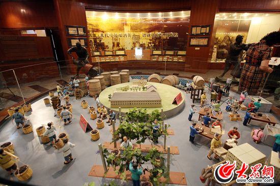 一走進酒文化博物館,大廳墻上的浮雕便吸引住了記者們的目光。綜合大廳以三面浮雕介紹了一百多年來影響張裕發展的十個重要人物和二十件大事,歷史廳有珍貴的老照片、古老的制酒工具、泥人演示的早期釀酒場景等文物史料,F代廳中的觸摸式光電轉換沙盤會向采訪團展示一個龐大的張裕廠貌和基地分布。博物館內還有各種自動釀酒、品酒設備供記者參與體驗。