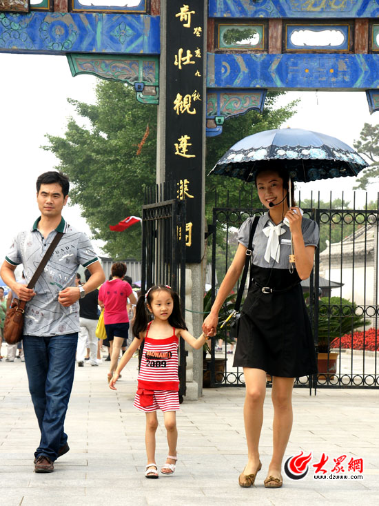 下午16點30,采訪團記者來到蓬萊閣景區,在景區門口迎接的正是一群衣著靚麗、笑容燦爛的女導游。“歡迎媒體的朋友來蓬萊閣景區采訪,請往這邊走。”導游張博昕帶著記者一行觀覽了景區,不時還指引著記者到好的景點拍照,嫻熟的介紹給記者留下了深刻的印象。