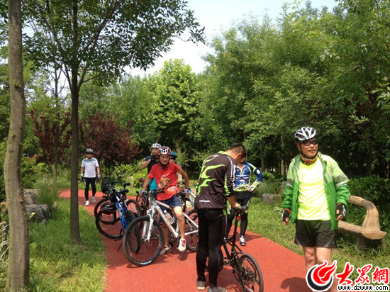 沙墩河綠道是全省首個城市綠道建設規劃項目,榮獲2012年度山東人居環境范例獎。一走入路道,媒體記者就被兩旁的綠意陶醉了!叭诵械纼蓚扔泻窈竦牧謪,走在里面真想多待一會。”爬山路過沙墩河綠道的“游俠”單車俱樂部隊長張者國說,這條綠道很長,他們在里面轉了三四圈了,休整一下,同時也呼吸一下新鮮空氣。