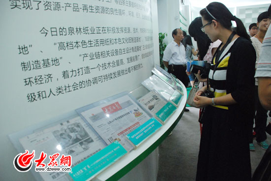 “這是造紙廠?這分明就是一處旅游景點啊!”今天上午,一來到泉林紙業經過科技處理的廢水水域形成的濕地,西線采訪團的記者們紛紛走上木棧橋,逗引水中歡實跳躍的魚兒;或者拿出相機,對著眼前的美景“咔、咔、咔”地拍個不停;或者用手機拍個風景,趕緊發個微博“秀”一下。而來到泉林紙業的展覽館里,大家更是大飽眼福,領略了什么是真正的科技創新、節能環保。