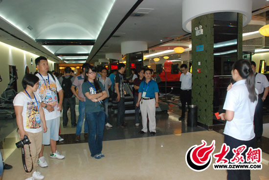 全民健身活動中心的工作人員向采訪團介紹情況。 記者 郭豪 攝