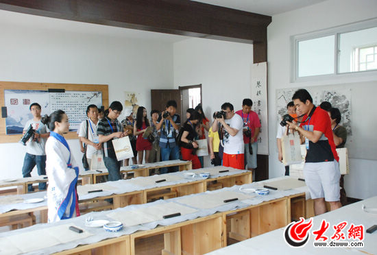 采訪團(tuán)的記者們拍攝書畫室,學(xué)員們可在這里學(xué)習(xí)書畫。(記者 郭豪攝)