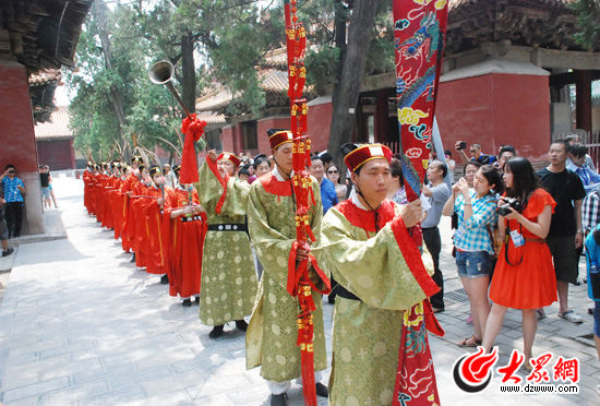 工作人員著古裝參加祭孔大典。(記者 郭豪攝)