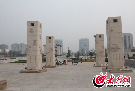 奚仲廣場內(nèi)的浮雕石柱。 記者 郭豪 攝