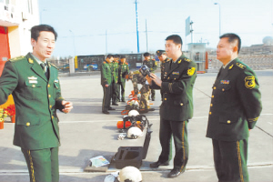 劉洪坤生前在和戰友討論消防設備應用