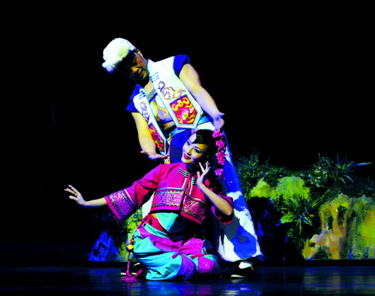 10月15日、16日,作為文華獎參評劇目,陜西省歌舞劇院排演的大型原創歌舞音畫《金格燦燦彩》在濰坊上演(上圖)。