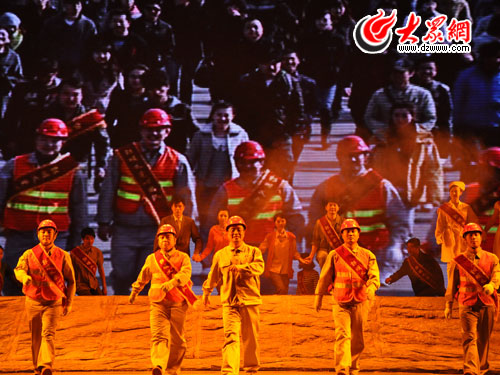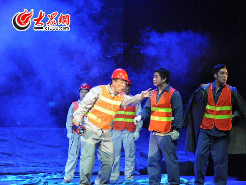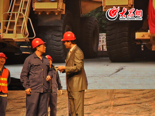 大眾網(wǎng)煙臺10月16日訊 (記者 鐘建) 在電閃雷鳴、暴雨傾盆的夜晚,剛剛獻完血,已經(jīng)連續(xù)工作15個小時的郭明義出現(xiàn)在了搶修礦山公路的搶險現(xiàn)場……16日晚7時30分,根據(jù)郭明義事跡改編創(chuàng)作、由遼寧人民藝術(shù)劇院創(chuàng)作排演的現(xiàn)實主義話劇《郭明義》在煙臺廣電大劇院上演。