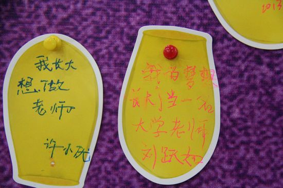 小朋友們在會展中心大廳的“夢想留言板”前合影