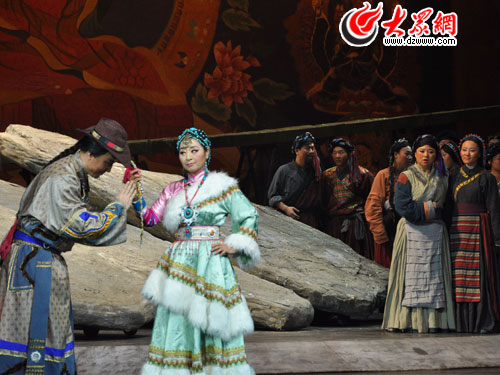 舞臺上,由著名女高音歌唱家、國家一級演員殷秀梅飾演的丹珠,用自己清爽的歌聲,將一個雖然生在貴人家庭,卻不失藏族人豪邁本色的藏族姑娘,刻畫得栩栩如生。而她那圓潤渾厚,將西洋唱法和民族唱法完美結合的歌聲,更是高亢流暢,行腔自如,令現場的觀眾如癡如醉。