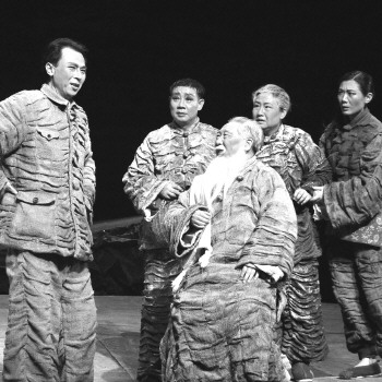 《紅旗渠》著重塑造了幾組群眾。最令人難忘的是小吱吱,她最美好的夢想就是有一天能“不心疼地”洗把臉。然而,為了給民工們挖充饑的野菜,小吱吱被吞沒在炸山的濃煙中。她的那句話“漳河水,你啥時候才能嘩嘩地流過來呀”,反復回蕩在舞臺上。