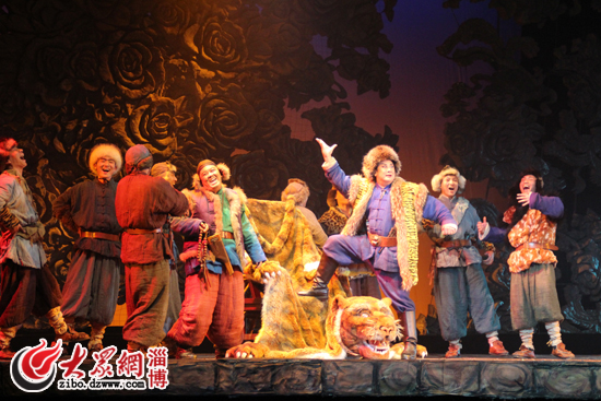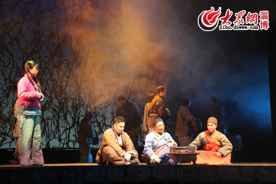 該劇以濃郁的黑土氣息和多變的藝術(shù)表現(xiàn)手法,加上演員李雪飛等人的精彩演繹,贏得了在場近千名淄博觀眾的滿堂喝彩。7時30分,龍江劇《鮮兒》正式開演,在悲壯的背景音樂聲中,一群衣衫襤褸的人們相扶相攜,邁著緩慢而堅定的步伐出現(xiàn)的舞臺中央。